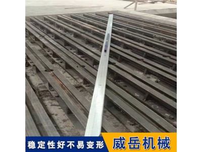 T型槽铸铁地轨是一种可以装配、试验、铸铁和检验大型设备的铸梁平台, 运用灵活方便, 可以根据设备的支撑点来调整位置, 更利于对设备的操作。根据设备的固定点来设计、拼接成铸梁平台, 不用做成大型的平台, 即节省了材料成本, 又可以占用很小的空间, 性价比很高, 主要用于大型设备的装配、试验、铸铁和检验。我们威岳厂家可根据需方图纸制作或双方商定生产加工具体规格的地轨。